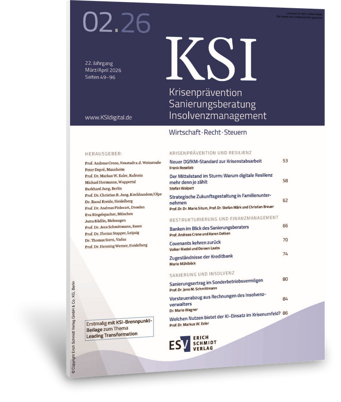 W&P Managing Partner Volker Riedel und Leiterin Debt Advisory Doreen Laabs in der aktuellen Ausgabe der Fachzeitschrift KSI.