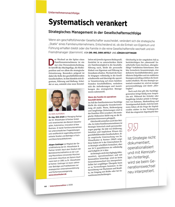 Wenn ein geschäftsführender Gesellschafter ausscheidet, verändert sich die strategische „Statik“ eines Familienunternehmens. Entscheidend ist, ob die Einheit von Eigentum und Führung erhalten bleibt oder die Familie in die reine Gesellschafterrolle wechselt und ein Fremdmanager übernimmt.