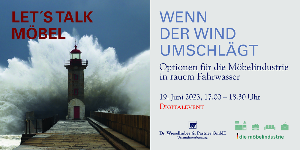 Was kann man tun, wenn der Wind so umschlägt? Welche Optionen haben die Möbelhersteller in dieser schwierigen Zeit? Wer schafft es aus eigener Kraft durch Performancemaßnahmen und wer muss wann und wie härtere Instrumente der Restrukturierung und Sanierung einsetzen – gewollt oder ungewollt? In unserem Digital-Event "Let´s talk Möbel" kommen ausgewiesene Experten aus der Praxis zu Wort und geben Ihre Erfahrungen weiter. Profitieren Sie von diesem Know-how.